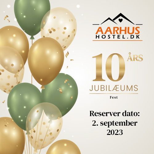 2023 er året, hvor vi kan fejre 10 års jubilæum med Aarhus Hostel A/S. Vi kombinerer det med 20-års jubilæum i Skanderby A/S, så der skal sættes et stort X i kalenderen. Sæt X i kalenderen 2. september 2023 Vi er ved at planlægge en festival, som afholdes på Aarhus Hostel. Det bliver en festival